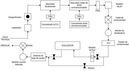 Todo el proceso de diálisis es controlado por el sistema de hemodiálisis que cuenta con tres componentes principales: